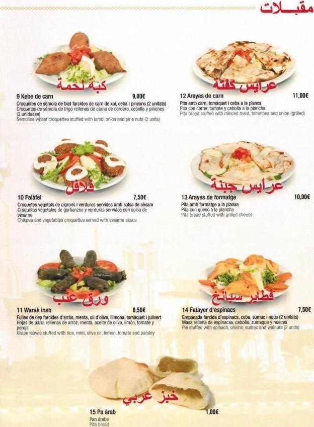 muy buena experencia. es un restaurante espectacular! cocina siria, libanesa y marroquí hasta del golfo! Me encanté la comida. el restaurante no es caro de nada y la verdad que fue una experencia muy buena, un servicio muy amable y la comida ha llegado muy rapido. y claro que no voy a olvidar la bailarina en directo. bailando con musica arabe! la verdad que es para repetir.
