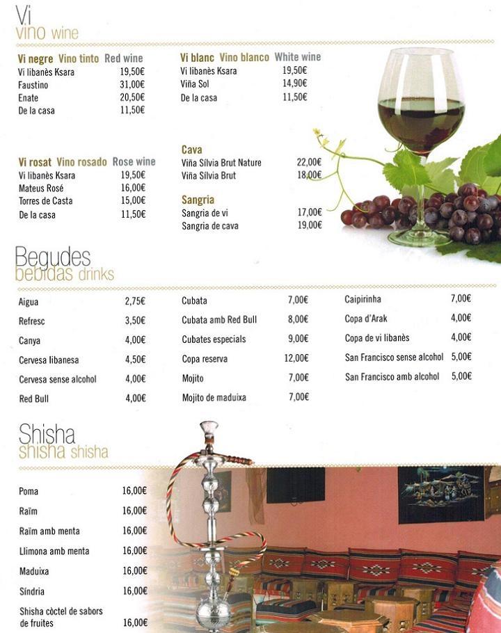 El menú muy bueno. Estado en el restaurante con mi novia por el medio dia y la comida era bonísima! Tienen vino libanes muy especial.