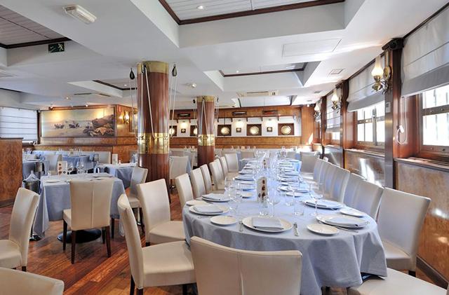 Su decoración es de estilo marinero y dispone de tres amplios salones, una gran barra repleta de tapas y una enorme terraza climatizada.