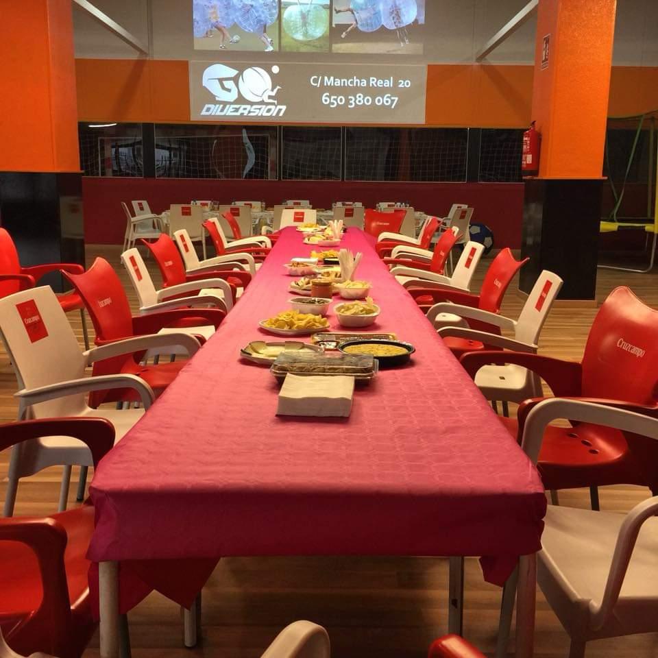 Go Diversión es una empresa especializada en el alquiler de espacios para la celebración de cumpleaños y fiestas infantiles que se encuentra en la Calle Mancha Real, número 20, en la ciudad de Jaén. Destaca por contar en sus instalaciones con un campo de fútbol cubierto de 600 metros cuadrados.