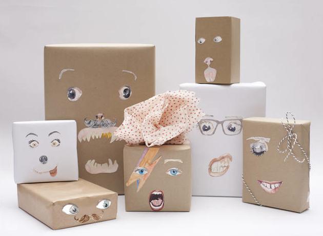 Para conseguirlo deberás envolver los regalos en papel kraft, asegurándote de que no queden arrugas en el papel y dejar volar tu creatividad dibujando caras graciosas. Añade color a tus creaciones utilizando crayones o tizas.
