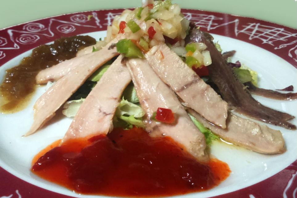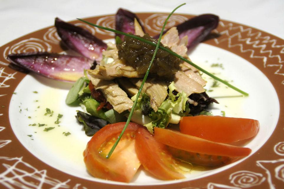 En la carta podemos encontrar platos como la ensalada de ventresca con bonito, el tartar de aguacate y salmón marinado con nachos thai, la tempura de verduras, los huevos de caserío revueltos, la paella de marisco con alioli, el bacalao con pisto a la vizcaína, el chuletón con pimientos del país, el confit de pato asado al Grand Marnier, la cuajada de oveja con miel y nueces, el coulant de chocolate fundido sobre crema de naranja o el helado de mojito con hierbabuena. También hay una importante presencia de platos veganos.