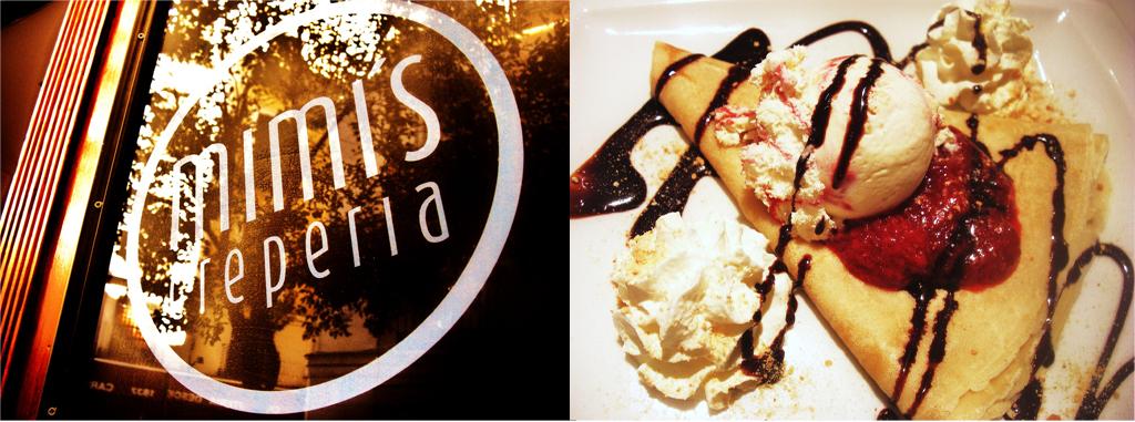 Como en París. La primera vez que probé crepes fue en París, los clásicos de Nutella, riquísimos por supuesto, y pensé que en ningún lado encontraría crepes así. Sin embargo, ya son varias creperías de Madrid que me han sorprendido, y una de ellas es Mimi. Es barato y tienen mucha variedad tanto en dulce como en salados, para los indecisos recomiendo ir a merendar cualquiera de los de chocolate, fresa... y para cenar uno salado. Con uno te llenas.