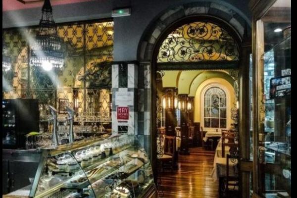 La Pastelería New York se inauguró en 1922. El artista Luis Lerchundi Sirotich se encargó del diseño del cuadro principal y los frescos, mientras que el Maestro Vidriero Félix Cañada Bello de realizar los hermosos vitrales que decoran el lugar.