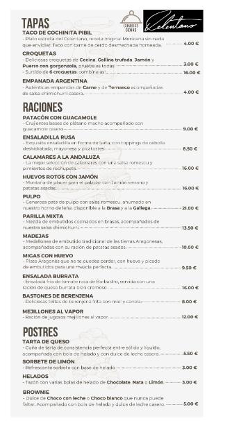 Restaurante Celentano es un bar restaurante de tapas y raciones situado en pleno corazón de Zaragoza, en una zona peatonal y a pocos pasos de la plaza del Pilar. Este establecimiento destaca por su cocina al horno de leña, donde elaboran raciones y tapas con un sabor único y un toque personal que deleita a todo aquel que lo visita.