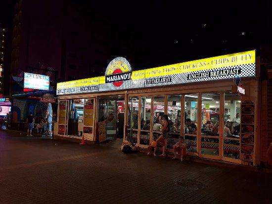 El Snack Bar Mariano's es un clásico de Benidorm con parada obligatoria. Abierto desde los años 80 y situado en el pleno Rincón de Loix, Mariano's es un restaurante fast food abierto 24 horas y que resume de forma fantástica el espíritu Benidorm.