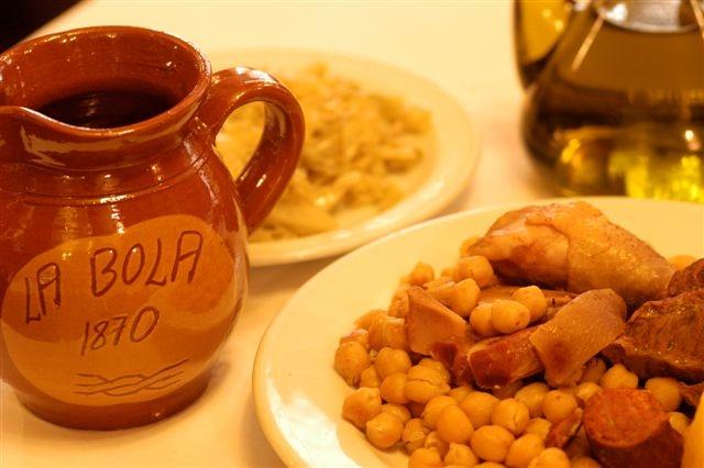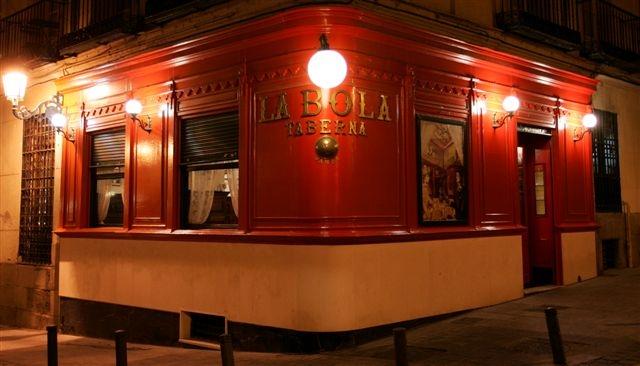 La Bola es una taberna familiar, situada en el centro de la capital, que abrió sus puertas a finales del siglo XIX, en 1870. Desde entonces sigue fiel a su tradición y a su destino, ofreciendo el mismo cocido madrileño, en puchero de barro individual y cocinado al fuego lento del carbón de encina tal y como se cocinaba antaño. Se sirve en el mismo puchero en que se prepara: primero la sopa y luego los garbanzos y las carnes acompañadas con repollo rehogado y tomate con comino, guindillas y cebolleta.